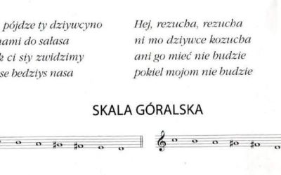 Najbardziej znane pieśni (nuty) góralskie oparte na tej skali wygrywał Jan Krzyptowski Sabała. Być może pod jego wpływem skalę góralską zaczął stosować kompozytor muzyki klasycznej Karol Szymanowski, twórca m.in. baletu „Harnasie”. Poza opisaną skalą muzyka góralska charakteryzuje się wielogłosowością. Mężczyźni śpiewają głosem gardłowym, krzykliwym, a kobiety głosem piersiowym (białym). Tradycyjny repertuar w połącznie z oryginalnym wykonaniem daje szczególny efekt gdy wykonywany jest na wolnym powietrzu, czyli w naturalnym środowisku gdyż dawniej śpiewano przede wszystkim na hali, podczas wypasu.