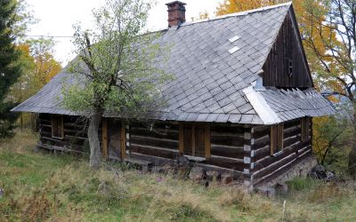 Jest to przykład chałupy dwuizbowej szerokofrontowej, z sienią usytuowaną na środku. Chałupa od strony zachodniej umocowana jest na kamiennej podmurówce, wzniesiona z połowizn łączonych na jaskółczy ogon. Dach dwuspadowy z daszkiem przyzbowym, pokryty płytkami azbestowymi.