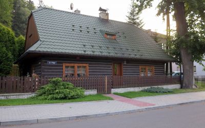 Przykład domu odrestaurowanego z wykorzystaniem nowoczesnych technologii bez naruszenia pierwotnego charakteru drewnianej chałupy. Obiekt szerokofrontowy pierwotnie dwuizbowy z sienią ulokowaną na środku. Dach dwuspadowy, ostry z daszkiem przyzbowym w ścianach szczytowych.